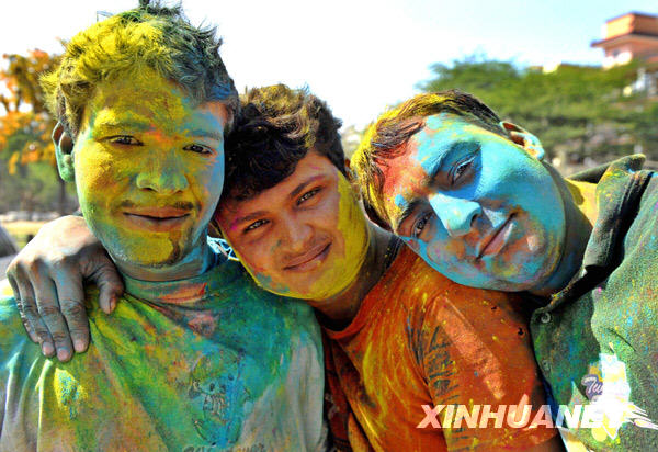 3月11日,在印度首都新德里,慶祝灑紅節(jié)的人們臉上色彩斑斕。當日是印度重要節(jié)日之一灑紅節(jié),人們紛紛走上街頭,互相拋撒色彩艷麗的顏料和粉末,迎接春天的來臨并互相表達美好的祝愿。灑紅節(jié)源于古人期盼豐收的活動,在每年2月至3月間舉行。