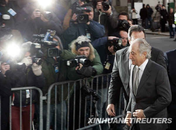 3月12日,在美國紐約,美國巨額金融詐騙案嫌疑人伯納德·麥道夫(右)抵達(dá)聯(lián)邦法庭準(zhǔn)備出庭。麥道夫的律師艾拉·索金10日在法庭上說,麥道夫擬于12日聽證會上對全部11項罪名指控承認(rèn)有罪。他可能因此面臨最高150年監(jiān)禁。 新華社/路透