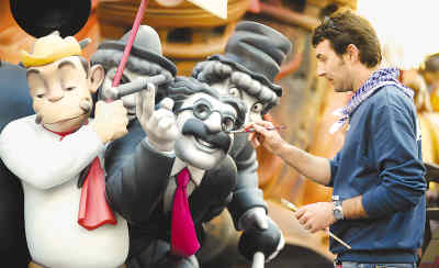 每年3月中旬,西班牙巴倫西亞市都會舉行為期一周的“火節(jié)”,以紀念這座城市的守護神圣約瑟夫。圖為一名藝術家正在描繪為慶!盎鸸(jié)”而準備的塑像!盎鸸(jié)”的高潮是燒掉各種奇形怪狀的塑像。新華社發(fā)