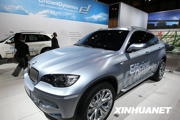 這是4月8日在美國(guó)紐約舉行的紐約國(guó)際車展媒體開(kāi)放日上拍攝的一款寶馬X6混合動(dòng)力車。新華社記者劉欣攝