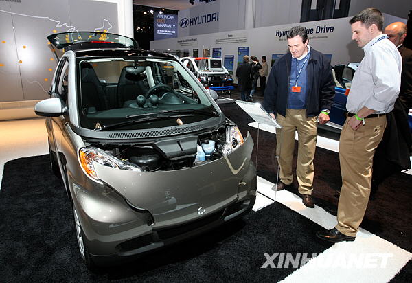 當(dāng)日,2009紐約國(guó)際車展對(duì)媒體開(kāi)放,各大參展商主打節(jié)能環(huán)保牌,混合動(dòng)力車、電動(dòng)車等節(jié)能車型大行其道。本屆車展將于4月10日至19日對(duì)公眾正式開(kāi)放。新華社記者劉欣攝