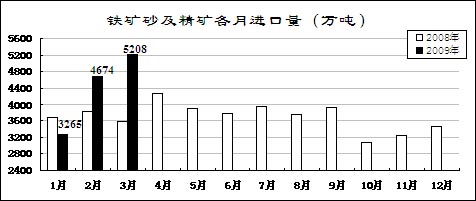 鋼材價(jià)格先升后降。受市場(chǎng)預(yù)期好轉(zhuǎn)和銷售企業(yè)補(bǔ)充庫存影響,鋼材價(jià)格從年初開始小幅回升,2月上旬國(guó)內(nèi)市場(chǎng)鋼材價(jià)格綜合指數(shù)為109.26,比去年12月最后一周回升5.96點(diǎn)。但由于有效需求沒有明顯恢復(fù)而生產(chǎn)增長(zhǎng)較快,2月中旬開始鋼材價(jià)格持續(xù)大幅回落。3月最后一周,國(guó)內(nèi)市場(chǎng)鋼材價(jià)格綜合指數(shù)為97.16,比2月上旬回落12.1點(diǎn),低于去年最低水平4.33點(diǎn)。3月份,6.5mm高線、20mm中厚板平均價(jià)格分別為3368元/噸和3443元/噸,比去年最低的11月份下降6.9%和2.3%,同比下降33.5%和42.3%;1.0mm冷軋板卷4312元/噸,比去年最低的11月份上漲4%,同比下降34.3%。