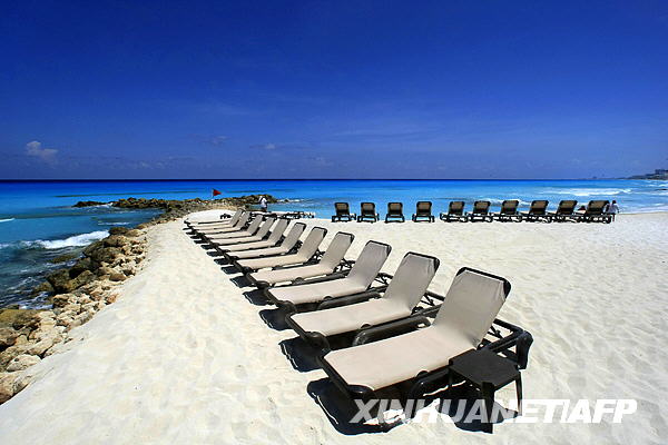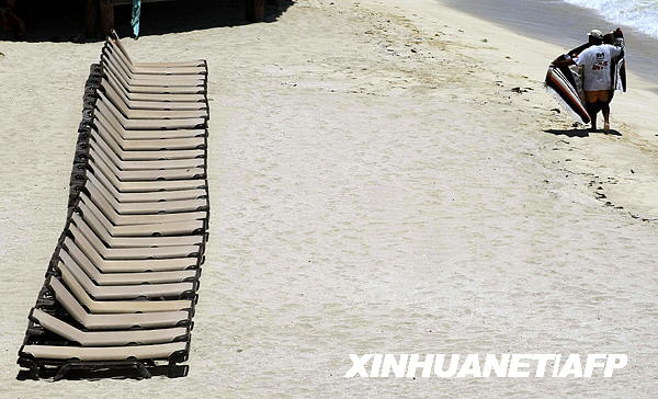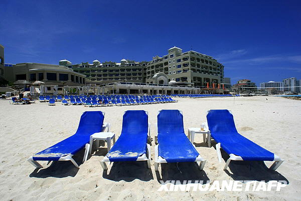 5月12日拍攝的照片顯示墨西哥旅游勝地坎昆海灘上見不到一個(gè)游客。甲型H1N1流感使墨西哥旅游業(yè)遭受重創(chuàng)。墨西哥地方官員11日說,游客銳減已迫使旅游勝地坎昆等地的25家酒店關(guān)門。墨旅游促進(jìn)委員會(huì)公布最新預(yù)測稱,2009年墨西哥旅游業(yè)盈利將比2008年減少近三成。新華社/法新