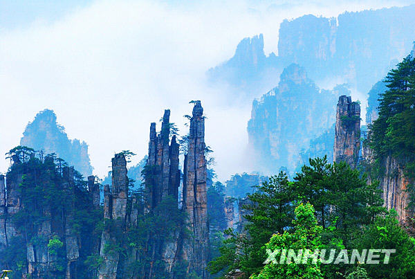 山水畫般的張家界國家森林公園風景(5月15日攝)。張家界國家森林公園位于湖南省西北部張家界市境內(nèi),成立于1982年,是中國第一個國家森林公園,擁有奇特的大面積石英砂巖峰林地貌,1992年12月被聯(lián)合國列入《世界自然遺產(chǎn)名錄》,2004年2月被列為世界地質(zhì)公園。整個公園自然風光以峰稱奇、以谷顯幽、以林見秀,被稱為“中國山水畫的原本”。近年來,張家界大力推進旅游行業(yè)整合提升,加大新線路、新產(chǎn)品開發(fā)力度,促進了旅游業(yè)的發(fā)展。2008年,張家界接待國內(nèi)外游客1600多萬人次,實現(xiàn)旅游總收入80多億元。