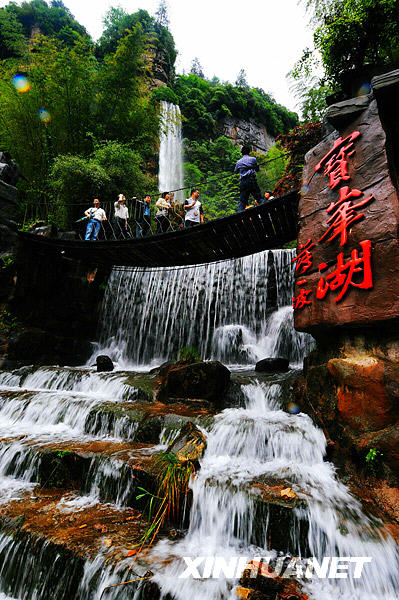 游客游覽張家界寶峰湖風景區(qū)(5月16日攝)。張家界國家森林公園位于湖南省西北部張家界市境內(nèi),成立于1982年,是中國第一個國家森林公園,擁有奇特的大面積石英砂巖峰林地貌,1992年12月被聯(lián)合國列入《世界自然遺產(chǎn)名錄》,2004年2月被列為世界地質(zhì)公園。整個公園自然風光以峰稱奇、以谷顯幽、以林見秀,被稱為“中國山水畫的原本”。近年來,張家界大力推進旅游行業(yè)整合提升,加大新線路、新產(chǎn)品開發(fā)力度,促進了旅游業(yè)的發(fā)展。2008年,張家界接待國內(nèi)外游客1600多萬人次,實現(xiàn)旅游總收入80多億元。