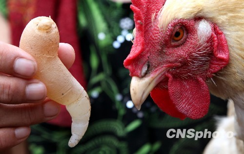 河南商丘市睢陽(yáng)區(qū)馮橋鄉(xiāng)一村民養(yǎng)的一只老母雞,近日下了一個(gè)形似海豚、有眼有臉、還帶著一條小尾巴的怪蛋。
