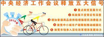 中國的宏觀經(jīng)濟(jì)政策,在保增長取得顯著成效后去向何方,又一次成為海內(nèi)外關(guān)注的焦點。 中央經(jīng)濟(jì)工作會議7日閉幕。記者在第一時間約訪了相關(guān)官員和專家,大家普遍認(rèn)為,這次會議為2010年宏觀政策“定了調(diào)”:保持宏觀政策的連續(xù)性和穩(wěn)定性,轉(zhuǎn)變經(jīng)濟(jì)發(fā)展方式已刻不容緩,通過保障和改善民生促進(jìn)經(jīng)濟(jì)結(jié)構(gòu)優(yōu)化、增強(qiáng)經(jīng)濟(jì)發(fā)展拉動力。