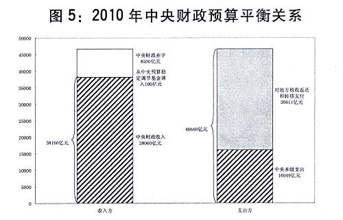 中央財(cái)政收入38060億元,比2009年執(zhí)行數(shù)(下同)增加2163.86億元,增長(zhǎng)6%。從中央預(yù)算穩(wěn)定調(diào)節(jié)基金中調(diào)入100億元。合計(jì)收入為38160億元。中央財(cái)政支出46660億元,增加2758.86億元,增長(zhǎng)6.3%。其中,中央本級(jí)支出16049億元,增加769.16億元,增長(zhǎng)5%;中央對(duì)地方稅收返還和轉(zhuǎn)移支付30611億元,增加1989.7億元,增長(zhǎng)7%。中央財(cái)政收支相抵,赤字8500億元,增加1000億元。相應(yīng)增加國(guó)債發(fā)行規(guī)模,中央財(cái)政國(guó)債余額限額71208.35億元。