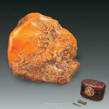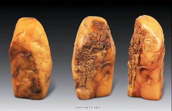 說(shuō)明:田黃石為壽山石中的極品,價(jià)格昂貴,皆以錢﹑兩為計(jì)算單位。自清以來(lái),極負(fù)盛名,爭(zhēng)相尋求視為瑰寶。所謂