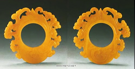 拍賣公司:北京翰海 日期:1999-07-05 說(shuō)明: 此件雞心珮質(zhì)地均勻干凈,毫無(wú)暇疵。色澤純正濕潤(rùn),刀法圓熟流暢,造型古拙準(zhǔn)確。以田黃為質(zhì)制**心珮,目前僅見此件。彌足珍貴。