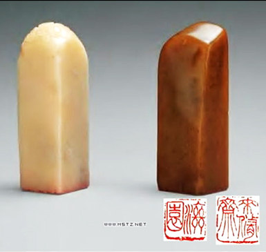 尺寸:高5cm、4.5cm 成交價(jià):RMB1,760,000 拍賣公司:北京翰海 日期:1999-07-05 說(shuō)明: 此二件田黃章,質(zhì)地勻靜純正,作工卓思精美,為傳世罕見佳制。