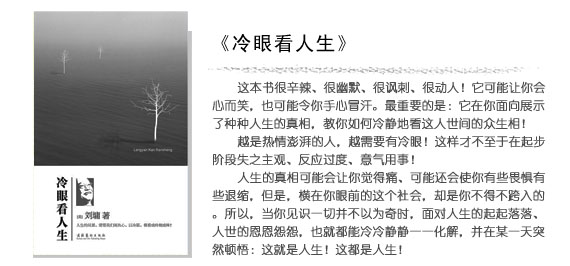 劉墉先生說這本書是比較辛辣的,但我覺得還好,讀過之后會有一種會心一笑的感覺。有些故事雖然經過夸大處理,但其實也好像就在身邊發(fā)生過一樣。。。