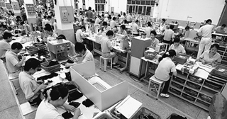 圖為東莞華寶鞋業(yè)有限公司制鞋流水線上忙碌的工人。來源:CFP | 生產(chǎn)總值增長119.8倍,城市居民人均可支配收入增長84倍,農(nóng)民人均純收入增長76.9倍……30年來,東莞靠“三來一補(bǔ)”和加工貿(mào)易寫就傳奇,從一個(gè)落后貧瘠的農(nóng)業(yè)縣一躍成為全球知名的制造業(yè)基地。 但發(fā)端于華爾街的金融危機(jī),開始向?qū)嶓w經(jīng)濟(jì)蔓延,東莞首當(dāng)其沖。2008年,東莞經(jīng)濟(jì)遭遇前所未有的嚴(yán)峻考驗(yàn)。 臨近歲末,記者再次來到東莞,五星級(jí)酒店里,來往客商少了;街道上,閑逛的年輕人多了。但形成鮮明對(duì)比的是,工業(yè)區(qū)里還有很多企業(yè),機(jī)器在快速運(yùn)轉(zhuǎn),工人在忙碌工作,拉原材料和產(chǎn)品的貨車在大門口進(jìn)進(jìn)出出。它們在經(jīng)濟(jì)寒冬中執(zhí)著堅(jiān)持,謀求新生,像極了東莞大道兩旁迎著寒風(fēng)挺拔身姿的綠草和傲立枝頭的紫荊花。 “當(dāng)前的形勢異常嚴(yán)峻,明年還會(huì)更困難些,但憑借30年改革開放打下的深厚基礎(chǔ),東莞有信心挺過這場危機(jī);而且,東莞還要把危機(jī)當(dāng)成產(chǎn)業(yè)轉(zhuǎn)型升級(jí)的大好時(shí)機(jī),寧可速度慢一些,也要把結(jié)構(gòu)調(diào)整過來。”東莞市委書記劉志庚說這話時(shí),臉上的表情是堅(jiān)定的。