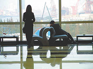 圖為兩位白領在上海商務樓大廳中休息。據(jù)2004年12月中國人壽保險股份有限公司提供的一份白領健康調查報告顯示,現(xiàn)代白領普遍面臨“亞健康”和“低心理商數(shù)”雙重健康威脅。尤其在京滬穗等地,認為自己身體、心理等各方面均健康的白領不足5%。CFP供圖(資料圖片) |