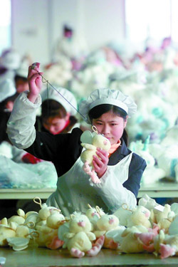 | 廣東的玩具生產(chǎn)企業(yè)正面臨出口下滑等困境。資料圖 | 廣東是全球知名的玩具生產(chǎn)基地、出口基地,占據(jù)中國甚至全球半壁江山。廣東生產(chǎn)的玩具占中國玩具總產(chǎn)值的70%以上,占全球銷量的五成。但近年來,這個紅火的行業(yè)陷入生存危機。 家電業(yè)也是廣東的支柱產(chǎn)業(yè)。廣東是中國乃至全球最大的家電生產(chǎn)基地,電飯鍋、電風扇等小家電產(chǎn)量占據(jù)全國90%的份額,微波爐、空調(diào)產(chǎn)量則占全國約50%的份額。有關數(shù)據(jù)顯示,2008年7月以來,家電業(yè)的訂單銳減。實力較差的企業(yè)7月份就有所體現(xiàn),訂單下降了30%;實力較強的企業(yè)第三季度也開始受到影響。