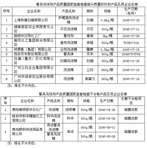 據(jù)國家質(zhì)檢總局網(wǎng)站,國家質(zhì)檢總局日前對全國51家企業(yè)的76種餐具洗滌產(chǎn)品進(jìn)行抽查,結(jié)果顯示四種產(chǎn)品質(zhì)量存有問題,產(chǎn)品抽查合格率為94.7%。