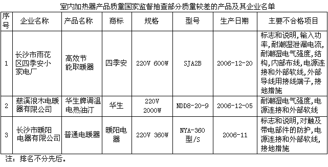 為了維護廣大消費者的合法權益,進一步規(guī)范室內加熱器行業(yè)的健康發(fā)展,國家質檢總局組織對室內加熱器產品質量進行了國家監(jiān)督抽查,共抽查了浙江、廣東、湖南、江蘇、安徽、上海、山東等7個省市40家企業(yè)生產的40種產品,產品抽樣合格率為85%。