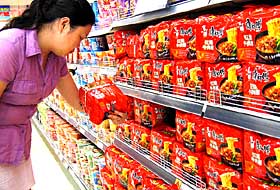 | 顧客在超市內(nèi)選購方便面。本報(bào)記者 陳飛
