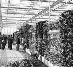 深秋時(shí)節(jié),驅(qū)車來(lái)到上海都市菜園。行前想象,既為菜園,不外乎廣闊的田地,連棟的大棚,里面長(zhǎng)著一畦畦一壟壟的青菜。可實(shí)景迥然不同:一間高大、寬敞的溫室暖房里,奇形怪狀的瓜果菜蔬不可勝數(shù)。這里的一根絲瓜,竟有1.8米長(zhǎng);南瓜一個(gè)重達(dá)150公斤;一株番茄展開枝葉,可以覆蓋60平方米,掛果1萬(wàn)枚以上。還有墻面上立體栽培出的紅葉甜菜,營(yíng)養(yǎng)液膜水中培育出的各類果蔬,五顏六色,美不勝收……
