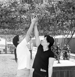 都市菜園籌建組負(fù)責(zé)人陳林兵指著棚下長(zhǎng)出的一對(duì)對(duì)黃白兩種顏色的南瓜,風(fēng)趣地介紹說(shuō):“我們管它們叫‘金童’和‘玉女’,而那個(gè),像不像香爐?”可不是,不經(jīng)指點(diǎn),這里的不少奇瓜異蔬,真要從眼皮底下溜過!斑@些形態(tài)奇異的蔬果,味道怎么樣?”我們禁不住好奇地問道!斑@間溫室里,種有200多種蔬果,這些品種及栽培技術(shù),是從國(guó)外引進(jìn)的,比較符合這里土地沙質(zhì)、鹽堿特性,種植出來(lái)的蔬菜綠色、環(huán)保、高產(chǎn),味道也很不錯(cuò)!标惲直卮鹫f(shuō)。
