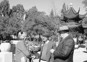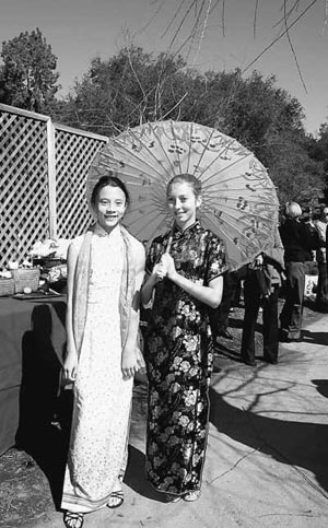 | 身著中式服裝的當?shù)厣倥趫@中留影。管克江/攝 | 本報洛杉磯2月24日電 23日,美國加利福尼亞州久負盛名的亨廷頓圖書館內(nèi)流芳溢彩,紅燈高懸。隨著鑼鼓聲動,祥獅起舞,加州第一座、也是目前美國最大的中國古典式園林“流芳園”正式開門迎客。