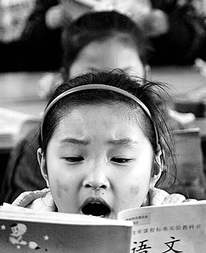 | 2月24日,河南社旗縣賒店鎮(zhèn)中心小學(xué)的學(xué)生在用循環(huán)教科書(shū)學(xué)習(xí)。宋同杰