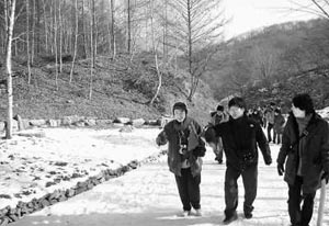 在這其中,歷經(jīng)40余載從枯山變成茂密森林的韓國(guó)忠州人登山“SK人才之林”給學(xué)生們留下了極其深刻的印象。 40年前,韓國(guó)的經(jīng)濟(jì)開始起飛之時(shí),人登山的植物受到了大面積的破壞,土壤直接暴露在陽光和暴雨之下,水土流失十分嚴(yán)重。在一片質(zhì)疑和嘲笑聲中,韓國(guó)SK集團(tuán)會(huì)長(zhǎng)崔鐘賢帶領(lǐng)著員工,在光禿禿的忠州人登山上種下一棵棵小樹苗,留下了堅(jiān)定的腳印和希望。 40年后,故人已去,曾經(jīng)荒蕪的人登山變成了茂密的森林!癝K集團(tuán)通過這樣的活動(dòng)既培養(yǎng)了員工關(guān)愛自然、保護(hù)環(huán)境的珍貴品質(zhì),也通過每年林業(yè)帶來的收益,包括果實(shí)、木材的收益設(shè)立獎(jiǎng)學(xué)金,資助優(yōu)秀學(xué)生讀書,為國(guó)家培養(yǎng)了人才。”SK集團(tuán)相關(guān)負(fù)責(zé)人講述的有關(guān)“SK人才之林”的感人故事吸引了大家。 2月2日,我們一行從首爾出發(fā),1個(gè)多小時(shí)后來到韓國(guó)忠州人登山的“SK人才之林”。人登山位于韓國(guó)北部的天登山和南部的地登山之間。這里剛剛下過雪,環(huán)望四周,一片雪白;一排排的參天大樹,樹干沖向天空,在陽光的照耀下舒展著枝杈。迎面吹來陣陣細(xì)風(fēng)送來清新的空氣!安豢上胂筮@滿山的樹林都是人工植栽的!”學(xué)生們一陣驚嘆。