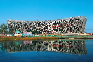 北京奧運(yùn)主體育場(chǎng)“鳥(niǎo)巢”全貌。趙冰
