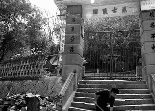 浩氣長(zhǎng)存”的對(duì)聯(lián)。有人正在清理堵在門前的沙石和木頭。鐵門少了一根鋼條,圍墻破了一個(gè)大窟窿,人可以輕易進(jìn)出(見圖①,余榮華攝)。 進(jìn)入陵園,“革命烈士永垂不朽”的紀(jì)念碑高高矗立,可碑前護(hù)欄卻破碎不堪,躺倒在地,周圍散落著碎石和枯葉(見圖②,余榮華攝)。附近居民說,經(jīng)常有些不懂事的孩子跑進(jìn)陵園玩耍,亂扔垃圾,甚至在墓碑旁玩火、放鞭炮。 葉必良的兒子葉金進(jìn)說,1988年陵園再次整修后,鎮(zhèn)、村會(huì)在清明節(jié)來祭掃,但陵園的日常打掃和維護(hù)主要是他們一家人負(fù)責(zé),陵園大門鑰匙也一直在他們手上,“但是也不可能天天來打掃”。 2005年底,“龍王”臺(tái)風(fēng)登陸福建,陵園地基和圍墻等遭到損壞,葉金進(jìn)曾向村、鎮(zhèn)、區(qū)三級(jí)遞交報(bào)告,希望能盡快對(duì)陵園進(jìn)行修繕。 “光靠我們家庭的力量,要修繕陵園很困難!彼f,“可事情一直拖著,門壞了,圍墻破了,如今連保證陵園的日常清潔都有些困難”。