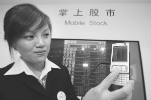 | 11月8日,中國聯(lián)通展示了基于WCDMA網(wǎng)絡(luò)的3G手機(jī)炒股服務(wù)。CFP圖片 | 昨日(11月18日),受3G牌照即將發(fā)放的消息刺激,A股市場中包括中國電信和中興通訊在內(nèi)的大多數(shù)電信股悉數(shù)漲停。申萬信息設(shè)備行業(yè)指數(shù)漲幅達(dá)到8.46%,位居首位。 業(yè)內(nèi)人士認(rèn)為,向運(yùn)營商發(fā)放3G牌照的各項(xiàng)條件已經(jīng)具備,而三大運(yùn)營商3G網(wǎng)絡(luò)建設(shè)三年預(yù)計(jì)將有超過2000億元的投資,這將對通信設(shè)備商及部分手機(jī)制造商形成利好。