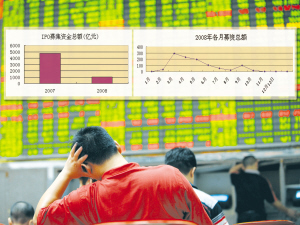 從2008年1月1日至今,上證綜指從高點(diǎn)5522點(diǎn)跌至12月12日的1954點(diǎn),下跌幅度超過(guò)60%。市場(chǎng)深幅調(diào)整不僅使投資者“巨虧”,同時(shí)也讓IPO規(guī)模大幅縮水。 據(jù)本報(bào)數(shù)據(jù)中心統(tǒng)計(jì),2007年共有123家公司在A股IPO上市,包括23家滬市主板公司和100家中小板公司,募集資金總額約為4770億元,平均發(fā)行市盈率30倍。 與2007年相比,2008年通過(guò)IPO上市的公司家數(shù)減少了38%,募集資金總額減少了78%,平均發(fā)行市盈率減少10%。 除了發(fā)行節(jié)奏大幅放緩之外,今年以來(lái),大盤(pán)股IPO也寥寥無(wú)幾,僅有5家公司發(fā)行規(guī)模在5億股以上,占IPO總家數(shù)的6%,而去年該比例為17%。不過(guò),盡管數(shù)量較少,但大盤(pán)股仍然扮演了主要融資角色,該5家公司共募集資金733億元,占今年IPO募集資金總額的70%。 在今年IPO的76家公司中,中煤能源募集資金數(shù)額最高,達(dá)256億元;中國(guó)南車發(fā)行股份數(shù)量最大,為30億股;6月23日上市的川大智勝發(fā)行股份數(shù)量最小,僅1300萬(wàn)股;2月1日上市的特爾佳募集資金最少,為1.222億元。 同時(shí),由于市場(chǎng)不斷下行,IPO上市首日漲幅也相差甚多。1月16日上市的華銳鑄鋼發(fā)行5400萬(wàn)股,募集資金5.8億元,開(kāi)盤(pán)漲幅達(dá)206%,收盤(pán)漲幅189%;而9月25日上市的華昌化工發(fā)行5100萬(wàn)股,募集資金5.1億元,開(kāi)盤(pán)漲幅僅有75%,收盤(pán)漲幅85%。 從行業(yè)來(lái)看,2007年有10家金融保險(xiǎn)業(yè)公司通過(guò)IPO上市,而2008年該數(shù)字為0;今年IPO公司中,占比最大的兩個(gè)行業(yè)分別是機(jī)械設(shè)備儀表行業(yè)和石油化學(xué)塑料塑膠行業(yè),分別有16家和14家。 從IPO發(fā)行月份上來(lái)看,今年3月份時(shí)最少,僅有4家;5月份時(shí)最多,共發(fā)行上市18家。第四季度截至目前,沒(méi)有一家公司IPO上市融資。 值得注意的是,12月5日登陸上交所的上海電氣雖然也是IPO的形式,但采用了換股吸收上電股份的方式,并未向市場(chǎng)融資。