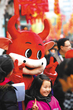 | 在杭州吳山腳下的年俗廟會(huì)上,游客和市民盡情感受牛年的年味與快樂(lè)。吳國(guó)方