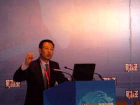 圖為中國(guó)證監(jiān)會(huì)主席助理姜洋在“財(cái)經(jīng)年會(huì)2007:預(yù)測(cè)與戰(zhàn)略”上發(fā)表講演。本報(bào)記者 張漢青 攝