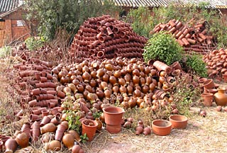 | 在云南省建水縣工藝美術(shù)陶廠的廠區(qū)里,一些制作好的紫陶器具隨意堆放著。本報記者 李倩