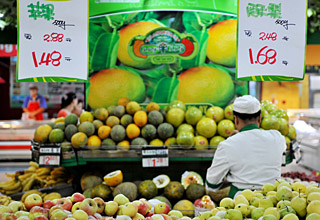 | 8月12日,銀川市一家超市的工作人員在整理水果。國家統(tǒng)計局當日發(fā)布的數(shù)字顯示,7月份我國居民消費價格總水平同比上漲6.3%。新華社記者