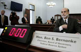 20日,在美國(guó)華盛頓國(guó)會(huì)山,美國(guó)聯(lián)邦儲(chǔ)備委員會(huì)主席伯南克(右)出席國(guó)會(huì)眾議院預(yù)算委員會(huì)舉行的一場(chǎng)關(guān)于經(jīng)濟(jì)復(fù)蘇的聽證會(huì)。伯南克20日表示贊同美國(guó)國(guó)會(huì)考慮出臺(tái)新的經(jīng)濟(jì)刺激方案。新華社/路透 | 美國(guó)聯(lián)邦儲(chǔ)備委員會(huì)(美聯(lián)儲(chǔ))主席伯南克20日投了民主黨一票。他當(dāng)天在美國(guó)國(guó)會(huì)眾議院預(yù)算委員會(huì)作證時(shí)指出,美國(guó)經(jīng)濟(jì)前景仍然非常地不確定,經(jīng)濟(jì)疲軟可能持續(xù)幾個(gè)季度,同時(shí)表示贊同美國(guó)國(guó)會(huì)考慮出臺(tái)新的經(jīng)濟(jì)刺激方案。 此前,眾議院(由民主黨把持)議長(zhǎng)南!づ迓逦骱兔裰鼽h國(guó)會(huì)議員曾建議國(guó)會(huì)在11月4日總統(tǒng)選舉后通過一項(xiàng)總額1500億美元的經(jīng)濟(jì)刺激方案,旨在“把更多錢直接放進(jìn)美國(guó)民眾口袋”。 業(yè)內(nèi)人士認(rèn)為,伯南克在字里行間中透露出了他對(duì)美國(guó)經(jīng)濟(jì)衰退的更多擔(dān)憂,因而猜測(cè)美聯(lián)儲(chǔ)將在下周舉行的貨幣政策會(huì)議上下調(diào)聯(lián)邦基金利率。
