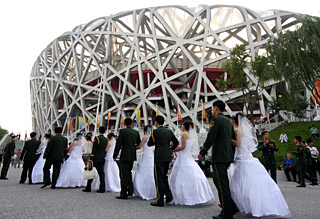 | 奧運(yùn)后的國(guó)家體育場(chǎng)“鳥巢”成為許多大型活動(dòng)的首選場(chǎng)地。圖為日前在這里舉辦的一場(chǎng)集體婚禮。新華社發(fā)(吳長(zhǎng)青