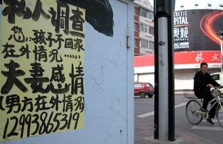 《民事訴訟法》規(guī)定誰(shuí)主張誰(shuí)舉證,用老百姓的話講就是需要自己拿證據(jù),這使民間調(diào)查機(jī)構(gòu)在龐大的市場(chǎng)需求下一步步孕育、催生出來(lái)。然而如今的許多私家偵探機(jī)構(gòu)為了獲得暴利,不得不在法律的邊緣行走。而關(guān)于私家偵探的存在是弊大于利、還是利大于弊的爭(zhēng)論始終沒有間斷。 11月中旬,記者在沈陽(yáng)市私家偵探機(jī)構(gòu)比較集中的和平區(qū)調(diào)查時(shí),碰巧遇到一位從事“調(diào)查員”工作時(shí)間較長(zhǎng)的徐某。談及“業(yè)務(wù)”,他把私家偵探的業(yè)務(wù)歸納為民事和商業(yè)兩類。民事包括婚外戀調(diào)查、親子鑒定和尋人等。但現(xiàn)在最熱門的是幫顧客調(diào)查上司的愛好和隱私,掌握了上司的這些把柄,很多人就可以“心里有底”。 徐某還向記者透露,這個(gè)行業(yè)雖競(jìng)爭(zhēng)殘酷,卻可獲暴利。比如婚外情調(diào)查,雖然起步價(jià)就要1萬(wàn)元,但許多人還是趨之若鶩,最高一次有人出價(jià)10萬(wàn)元。 “至于商業(yè)調(diào)查這一塊,以討債的居多,也有不少人花大錢要買工程或項(xiàng)目招投標(biāo)的底價(jià)和對(duì)手價(jià)格之類。但法律有規(guī)定,這種行為最高可判12年,大的調(diào)查所一般不敢接,一些小所還是有接的!毙炷尺@樣講述著行業(yè)的內(nèi)幕。在暗訪中,記者了解到了沈陽(yáng)調(diào)查行業(yè)的基本價(jià)格。尋人調(diào)查:4000元/人;婚外情調(diào)查10000元/人;查銀行存款:3000元/賬號(hào);查手機(jī)記錄:2000元/部;查電話地址:1000元/部;查房產(chǎn):3000元/套…… 記者還注意到,幾乎所有的調(diào)查事務(wù)所都有攝像機(jī)、偷拍機(jī)、竊聽器等器材。偷拍機(jī)的針孔攝像頭是最先進(jìn)的。調(diào)查人員在保持聯(lián)絡(luò)時(shí),經(jīng)常使用手機(jī)和固定頻率的對(duì)講機(jī)。一般的調(diào)查事務(wù)所都擁有兩輛以上的車輛。 12月2日,在沈陽(yáng)市皇姑區(qū)五一商店附近的一處民宅墻邊,記者發(fā)現(xiàn)了多個(gè)偵探機(jī)構(gòu)所發(fā)布的業(yè)務(wù)廣告。走到跟前細(xì)看,廣告內(nèi)容全是調(diào)查婚外情、跟蹤之類的業(yè)務(wù)。其實(shí),我國(guó)公民的個(gè)人隱私受法律保護(hù),跟蹤業(yè)務(wù)應(yīng)屬偵察工作,作為私家偵探機(jī)構(gòu)并無(wú)此權(quán)力。承諾能為客戶做此業(yè)務(wù),其實(shí)就是在表白自己可以無(wú)事不做,只要你出錢。這顯然已超出法律底線。