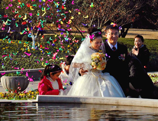 | 西子湖畔的婚慶儀式,成為杭州冬日里一道浪漫的風(fēng)景。新華社記者 譚進(jìn)