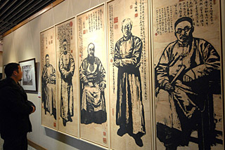 | 觀眾在欣賞版畫作品《浙江學(xué)界群像》。新華社發(fā)(程瑞鑫
