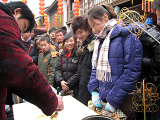 | 在杭州著名的仿古步行街河坊街上,具有濃郁中國民間風(fēng)味的手工藝品受到了各地游客的熱捧。新華社記者 黃深鋼