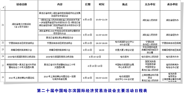 | 中國哈爾濱國際經(jīng)濟(jì)貿(mào)易洽談會(簡稱哈洽會)是國家批準(zhǔn)舉辦的大型對外交易會之一。自1990年創(chuàng)辦至今,已經(jīng)連續(xù)成功地舉辦了十九屆,有80多個國家和地區(qū)參會參展,累計參會參展的中外客商達(dá)150多萬人次,總成交額近千億美元。二十年來,哈洽會始終堅持“突出俄羅斯、面向東北亞、輻射全世界、服務(wù)全中國”的辦會宗旨,不斷開拓創(chuàng)新,從初創(chuàng)走向成熟,從區(qū)域走向世界,已經(jīng)發(fā)展成為享譽(yù)國內(nèi)外的國家級、國際性經(jīng)貿(mào)盛會,哈洽會已經(jīng)成為中俄經(jīng)貿(mào)合作第一大展覽會。[詳細(xì)] | |