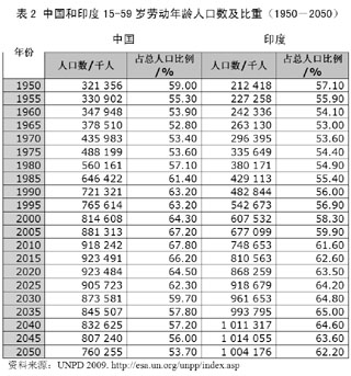 從人口發(fā)展規(guī)律來看,既要避免過高增長(zhǎng),也要避免負(fù)增長(zhǎng)。特別是當(dāng)婦女總和生育率長(zhǎng)期明顯低于婦女生育更替水平的時(shí)候,就會(huì)導(dǎo)致少兒人口、青年人口、勞動(dòng)年齡人口規(guī)模的持續(xù)下降,以及隨后總?cè)丝谝?guī)模的持續(xù)下降。 事實(shí)上,我國(guó)少兒人口首先出現(xiàn)了絕對(duì)數(shù)大幅度下降趨勢(shì),已經(jīng)出現(xiàn)了嚴(yán)重的“少子化”。在1995年前后我國(guó)0-14歲少兒人口絕對(duì)數(shù)達(dá)到了最高峰,大約為3.34億人,而后便持續(xù)下降,2008年的時(shí)候減少到2.52億人,比1995年減少了24.6%,占總?cè)丝诒壤?9.0%。這與印度的情況正好相反,根據(jù)聯(lián)合國(guó)人口署提供的數(shù)據(jù),從1990年起印度0-14歲少兒人口就已經(jīng)超過中國(guó),在2010年達(dá)到3.74億人,高出中國(guó)近50%,這意味著15年之后,15-30歲青年人口比重比中國(guó)高出近50%。這就需要及時(shí)調(diào)整人口生育政策,適當(dāng)提高婦女生育率,扭轉(zhuǎn)少兒人口大幅度下降趨勢(shì)。(如表1) 我國(guó)的15-59歲勞動(dòng)人口大約在2015-2020年之間也會(huì)達(dá)到最高峰,大約9.23億人,而后開始持續(xù)下降。最遲在2025年印度的15-59歲勞動(dòng)年齡人口將會(huì)超過中國(guó);到2050年,中國(guó)的15-59歲勞動(dòng)年齡人口數(shù)大約要比印度少2.44億人。(如表2) 進(jìn)入21世紀(jì),我國(guó)在人口問題方面同時(shí)出現(xiàn)兩個(gè)新的發(fā)展挑戰(zhàn):一個(gè)是加速的“少子化”,即婦女總和生育率的過快下降,明顯低于正常的人口生育更替水平。第二個(gè)是加速的老齡化。根據(jù)聯(lián)合國(guó)人口署的預(yù)測(cè),到2020年我國(guó)60歲以上人口將占到總?cè)丝诘?6.7%,2050年將進(jìn)一步上升到31.1%,大大高于屆時(shí)的世界平均水平(21.9%)。 20世紀(jì)80年代以來的我國(guó)人口政策的目標(biāo)是防止人口增長(zhǎng)過快,可以說我們已經(jīng)成功地完成了這個(gè)目標(biāo)。因此我們稱“一對(duì)夫婦生育一個(gè)孩子”屬于第一代人口政策,也花了一代人的時(shí)間。從現(xiàn)在起開始實(shí)行第二代人口政策,即“一對(duì)夫婦生育兩個(gè)孩子”,其政策目標(biāo)是防止人口嚴(yán)重老化和少子化。現(xiàn)在看來能否實(shí)現(xiàn)這個(gè)目標(biāo)依然是未知數(shù),它取決于我們對(duì)未來人口政策的調(diào)整和實(shí)施機(jī)會(huì)窗口。由于1980年以來的人口政策還有很大的慣性,還有被繼續(xù)“鎖定”的可能,調(diào)整起來還有很大的不確定性。但是從長(zhǎng)期成本和收益角度來看,早調(diào)整早主動(dòng),晚調(diào)整晚主動(dòng),不調(diào)整則被動(dòng)。