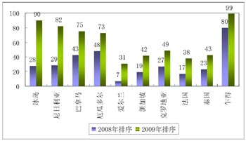 《全球100個國家國際貿(mào)易投資風險指數(shù)》(ITIRI2009)報告顯示,包括國際和平、國內(nèi)穩(wěn)定、法律效率三項指標在內(nèi)的政治風險指數(shù)平均值為0.8561,比2008年平均值0.8401提升了2%,全球政治風險狀況進一步改善。 2008年世界經(jīng)濟繼續(xù)在和平的主旋律中向前發(fā)展。數(shù)據(jù)表明,在全球100個國家國際貿(mào)易投資政治風險指數(shù)中,前10名均是發(fā)達國家,后10名有7個國家是發(fā)展中國家。非洲的納米比亞在100個國家政治風險指數(shù)排名中首次進入前15名,而日本、法國、斯洛伐克這些發(fā)達國家由于受到國內(nèi)政府更迭、參與國際戰(zhàn)爭等非穩(wěn)定因素的較大影響,在本次排名中有較大的滑落。