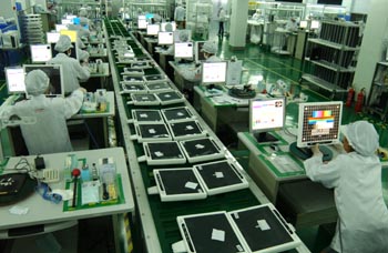 2009年我國內(nèi)地宣布投建的7.5代以上液晶面板生產(chǎn)線已多達8條,預(yù)計總投資額將超過2000億元人民幣。兩到三年后液晶面板市場或?qū)⒚媾R產(chǎn)能過剩的考驗。(資料照片) |