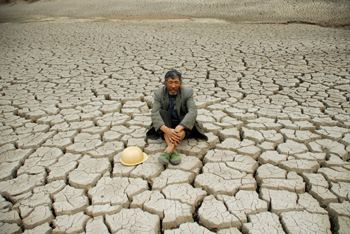 一位老漢坐在云南羅平縣九龍鎮(zhèn)干涸的牛街河水庫庫底。新華社發(fā)(毛虹