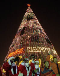 12月20日晚上,可口可樂(lè)公司在北京歡樂(lè)谷公園舉行巨型圣誕樹(shù)亮燈儀式。據(jù)介紹,這個(gè)巨型可口可樂(lè)圣誕樹(shù)高達(dá)25米,底座直徑達(dá)15米。新華社發(fā) (宋為偉 攝)
