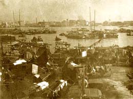 | 昔日的上海十六鋪魚碼頭 | 100多年前,上海十六鋪小東門大街(今方浜東路),魚行林立,形成了品種齊全的魚行街。其時,旅居上海的錢塘才子袁翔浦,曾在一首《望江南》詞里,描繪了當(dāng)時上海海鮮盈市的盛況:“申江好,莫嘆食無魚,赭尾銀鱗終歲足,雕蚶鏤蛤及時儲,鮮美有誰知!钡搅20世紀(jì)三十年代初,上海已成為全國最大的水產(chǎn)品集散地,原有的十六鋪魚行已難以承擔(dān)整個上海的魚貨交易。1934年,國民政府實業(yè)部上海魚市場籌備委員會成立。經(jīng)籌備會實地考察,選定了楊樹浦底的定海島(今復(fù)興島)作為上海魚市場的場址。 1935年5月11日,魚市場舉行開幕典禮。12日凌晨3時正式開業(yè),靠碼頭的漁船多達(dá)40余艘。原來在南市十六鋪的魚行以經(jīng)紀(jì)人身份進入魚市場集中交易,當(dāng)天進場的魚販有4000人。 這是全國設(shè)施最完善、交易量最大的魚市場。據(jù)當(dāng)年的統(tǒng)計資料:上海魚市場自開業(yè)至當(dāng)年年底234天,共交易魚貨6萬余噸,營業(yè)總額為825.51萬元。魚市場開業(yè)后,幾乎整個東、黃海上的漁船都到上海來投售。那時候漁汛期間,復(fù)興島的浮船碼頭江面上,桅檣如林,漁旗飄揚,在魚市場7樓樓頂,霓虹燈晝夜不停地閃爍,打出“上海魚市場”5個大字,映紅了半邊天空,漁船一進入?yún)卿量诰湍芸吹健?上А鞍恕ぁ睉?zhàn)事一起,魚市場毀于日軍的炮火。