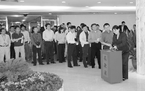| 5月15日,證監(jiān)會(huì)工作人員為災(zāi)區(qū)捐款 | 四川汶川地區(qū)發(fā)生強(qiáng)烈地震災(zāi)害后,中國(guó)證監(jiān)會(huì)高度重視,緊急啟動(dòng)應(yīng)急預(yù)案,對(duì)做好證券期貨行業(yè)抗震救災(zāi)工作,切實(shí)保障市場(chǎng)有序運(yùn)行做出專門部署和安排。從北京的監(jiān)管機(jī)構(gòu)望向?yàn)?zāi)區(qū),雖路途遙遠(yuǎn)但心同此地,雖安危有別但憂患與共,其中瞬間種種,尤為值得記取——災(zāi)難中,讓我們一同堅(jiān)強(qiáng)。