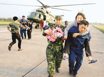 凱攝 | 今天記者從成都軍區(qū)抗震救災(zāi)聯(lián)合指揮部獲悉:截止到15日23時35分,救援部隊已進入所有重災(zāi)鄉(xiāng)鎮(zhèn)。繼14日解放軍和武警官兵進入所有受災(zāi)縣城以來,四川地震災(zāi)區(qū)的抗震救災(zāi)工作又向前推進一步。目前,已有超過10萬名解放軍、武警官兵和民兵預(yù)備役人員在一線搜救生存者。 據(jù)了解,到5月14日18時,四川地震災(zāi)區(qū)還有58個鄉(xiāng)鎮(zhèn)沒有救援部隊進入。為盡快解救這些地區(qū)受困群眾,成都軍區(qū)從5月14日深夜到今天凌晨緊急調(diào)動救援官兵采取徒步強行軍方式,靠兩個腳板走進了其中的15個受災(zāi)鄉(xiāng)鎮(zhèn)。 據(jù)介紹,一些偏遠的受災(zāi)鄉(xiāng)鎮(zhèn)由于道路阻斷、地形復(fù)雜及惡劣天氣影響,延緩了救災(zāi)部隊進入的時間。這些鄉(xiāng)鎮(zhèn)包括受災(zāi)嚴重的汶川縣、茂縣、理縣的9個鄉(xiāng)鎮(zhèn)和綿陽市的北川羌族自治縣、平武縣的34個鄉(xiāng)鎮(zhèn)。為盡快打通這些受災(zāi)鄉(xiāng)鎮(zhèn)的通道,盡快解救受困群眾,成都軍區(qū)要求救援部隊務(wù)必在今天午夜前進入上述鄉(xiāng)鎮(zhèn)。 為此,成都軍區(qū)投入了大量人力物力,不惜一切代價運送兵力,其中,向交通條件極為惡劣的10個鄉(xiāng)鎮(zhèn)救災(zāi)點出動了106架次的直升機。目前,作為救援大部隊先遣隊的近1000名官兵已在各個鄉(xiāng)鎮(zhèn)開展救援行動。 本報成都5月15日電